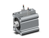 Standard double acting, single rod version of the CQ2 compact cylinder. The CQ2 is available in bore sizes from 12mm to 100mm. It comes standard with male or female piston rod threads. It is possible to mount auto switches on any of the 4 surfaces.